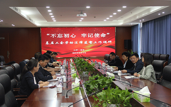 江苏省总工会法律工作部主任科员刘为伟、 江苏省总工会法律工作部副主任科员赵萌萌、 南通市总工会主席助理陈志祥、南通市总工会法律工作部副部长龚亚乐陪同调研。