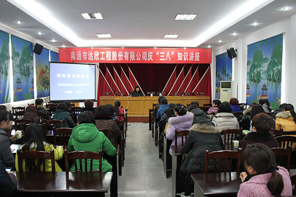 为提升女职工对妇女健康知识的认识,增长健康保健常识,公司工会于3月7日下午邀请了海安县人民医院妇产科专家王秀美主任医师,来公司四楼会议室对妇科日常知识进行了专题讲座。参加聆听知识讲座有公司总部全体女员工、工程公司管理岗位的女职工以及公司领导家属代表等。